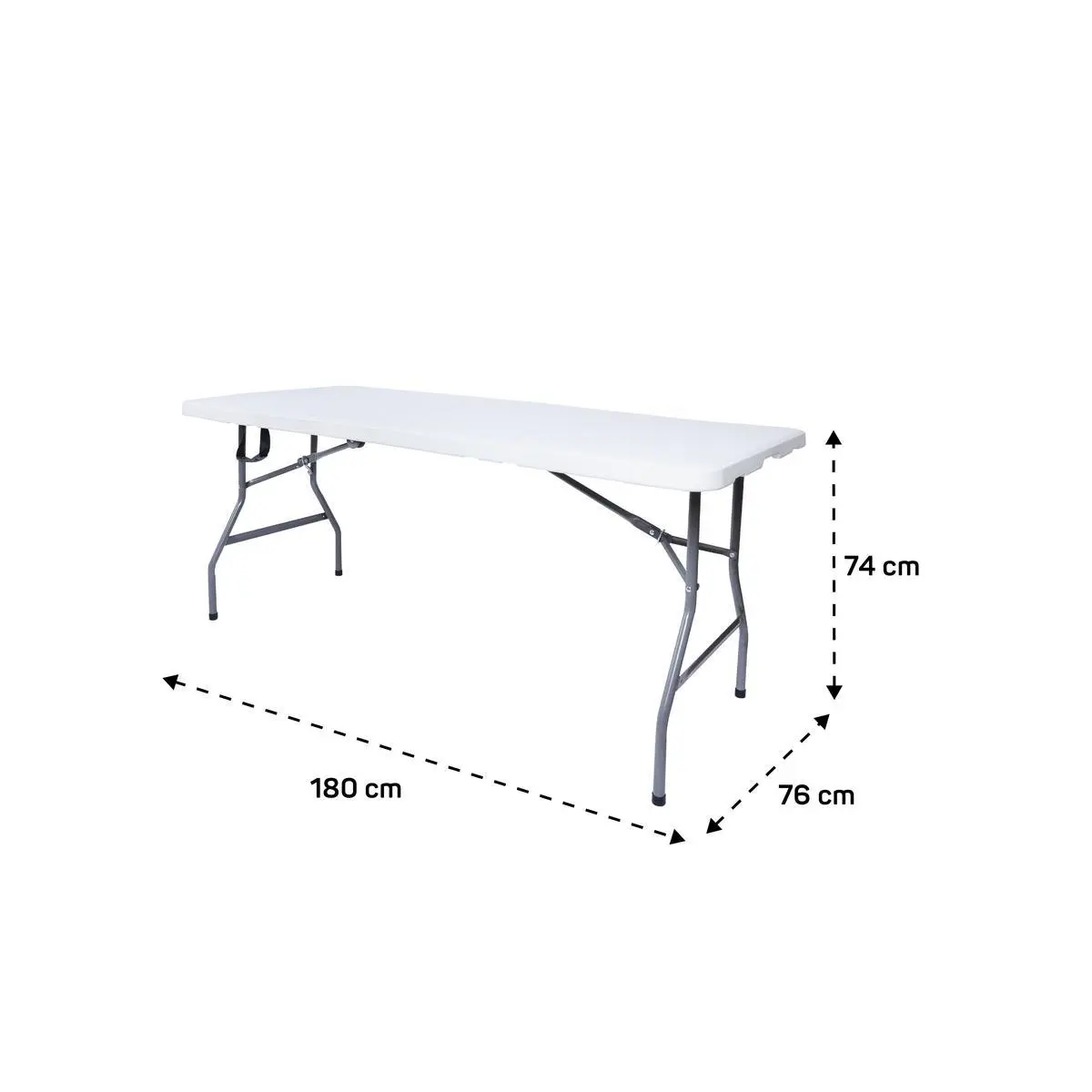• Table : 180 x 70 x 74 cm (8 places), pliable en valise.